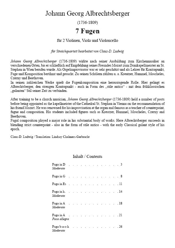 Produktinformationen "Albrechtsberger, Johann Georg – 7 Fugen (original für Orgel)"