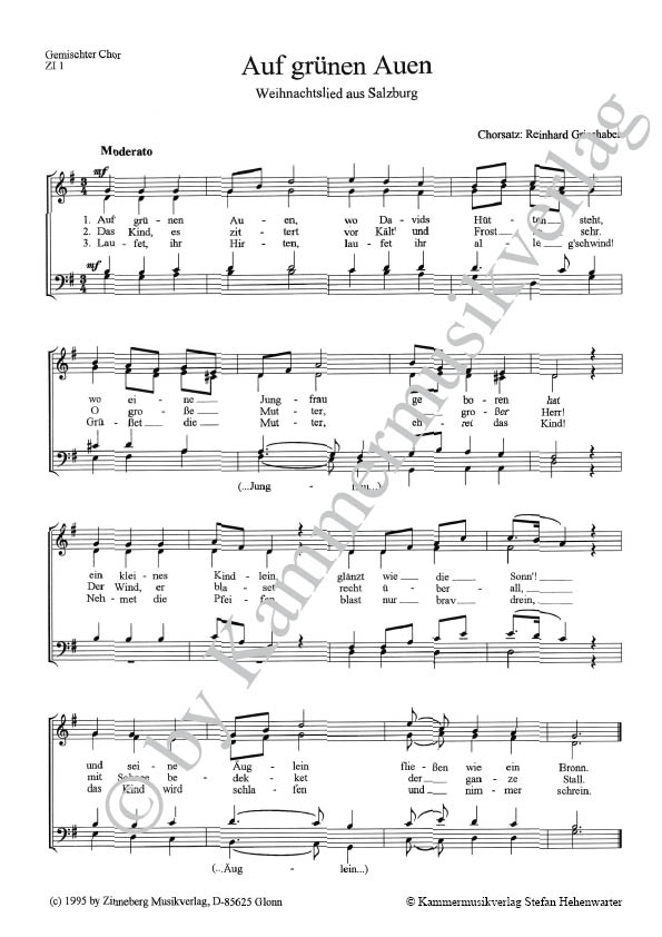 1 Notenseite / Mindestbestellmenge 12 Stück