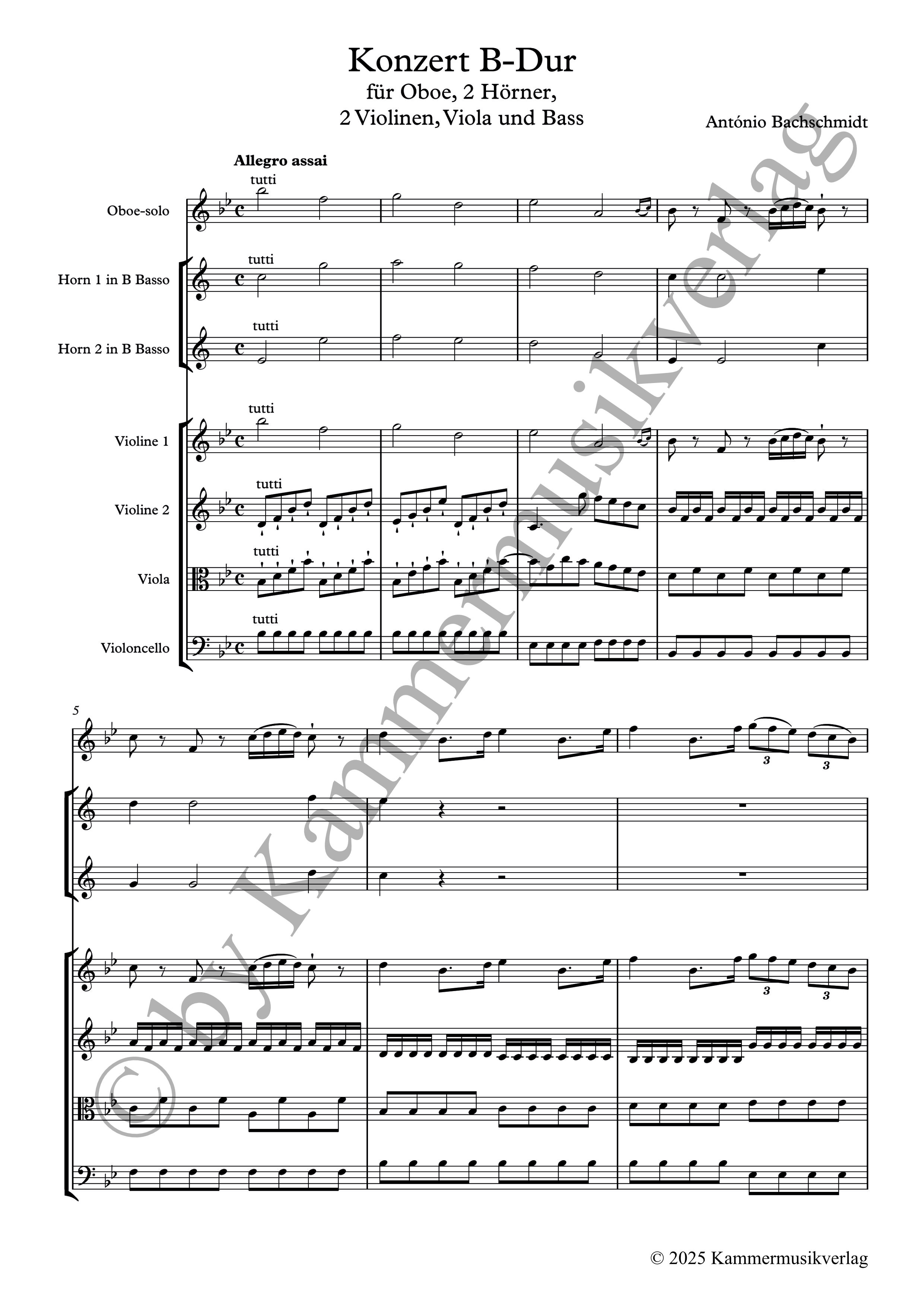 für Oboe, 2 Hörner, 2 Violinen, Viola und Bass