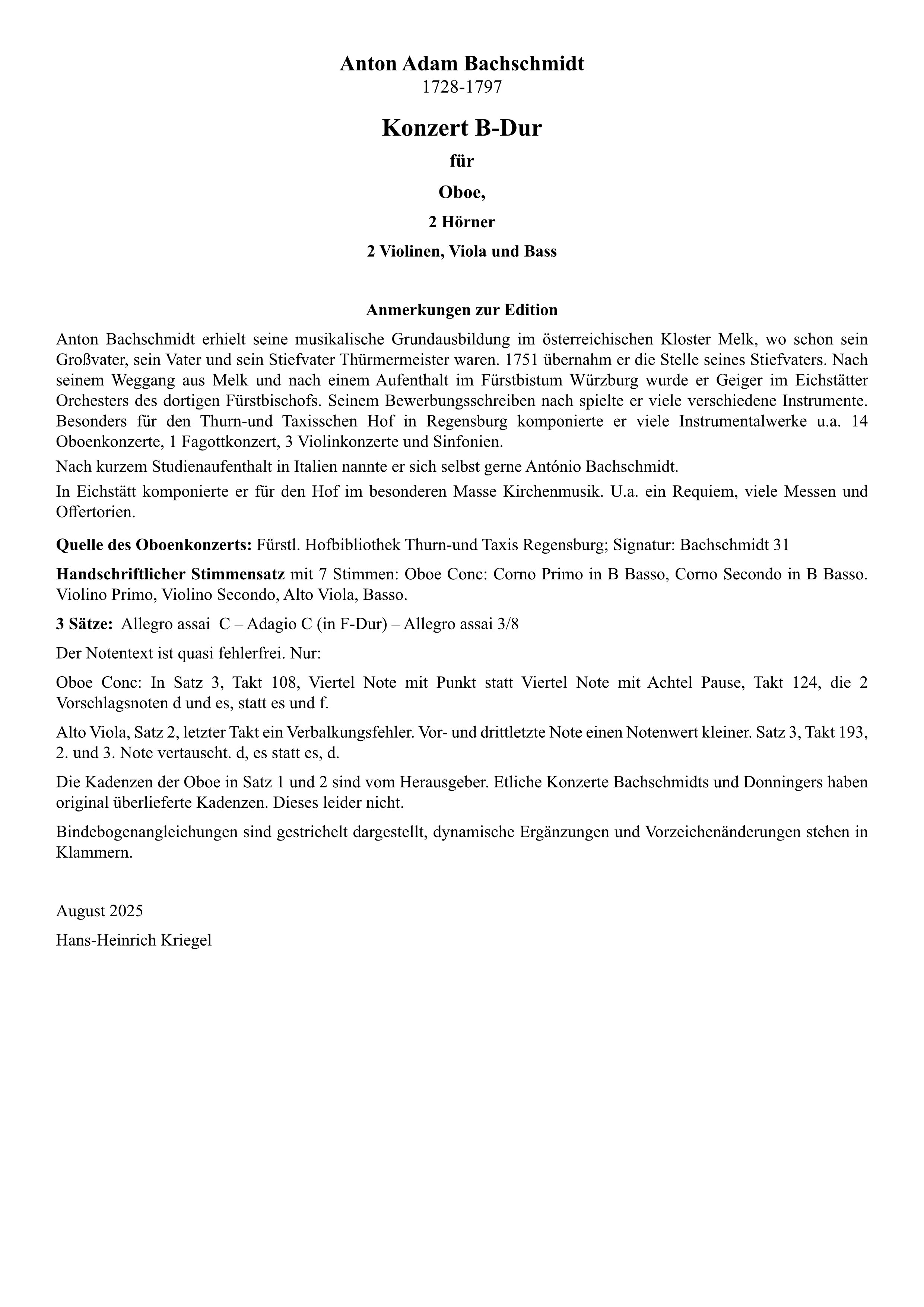 Bachschmidt, Anton Adam – Konzert B-Dur