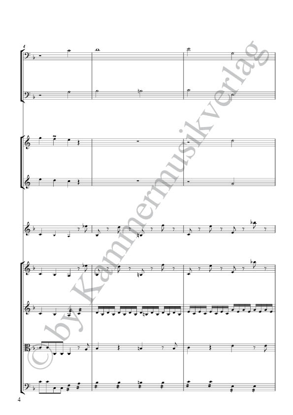 für Oboe Solo, 2 Fagotte, 2 Hörner 2 Violinen, Viola und Bass