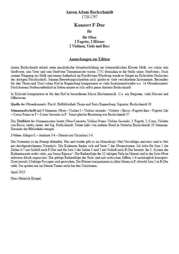 Produktinformationen "Bachschmidt, Anton Adam – Konzert F-Dur"