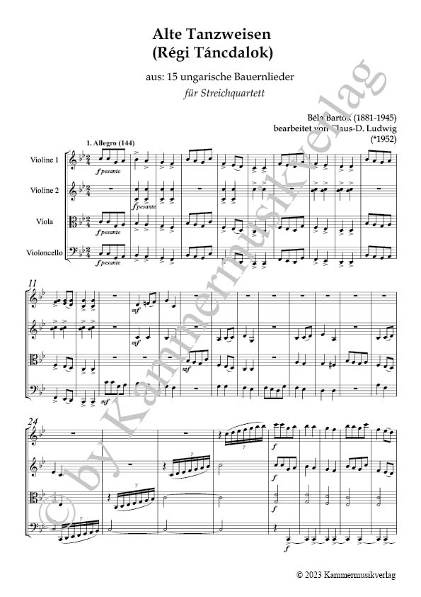 Für Streichquartett eingerichtet von Claus-D. Ludwig