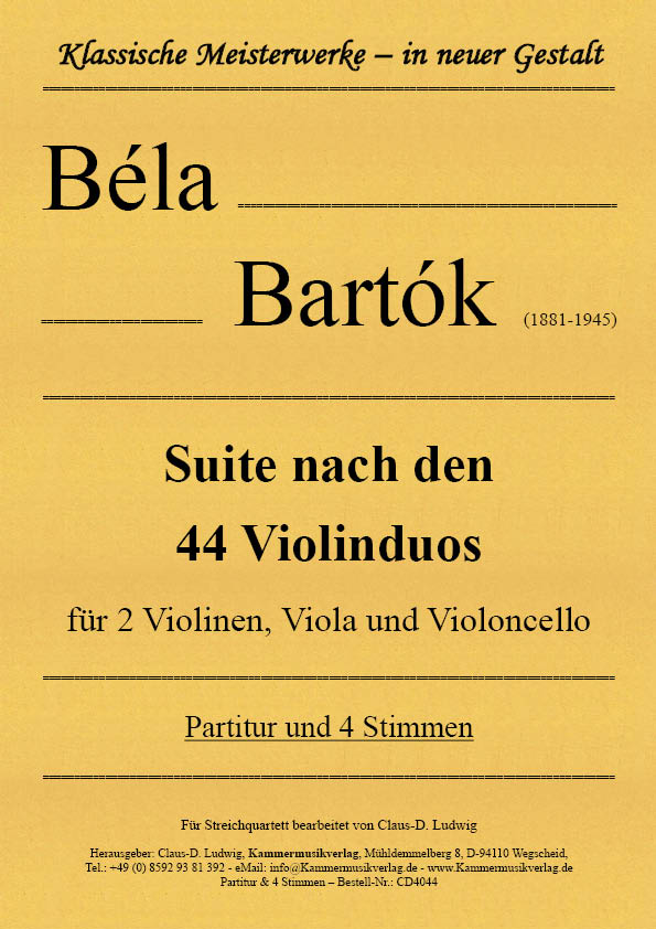 Produktinformationen "Bartók, Béla – Suite nach den 44 Violinduos"