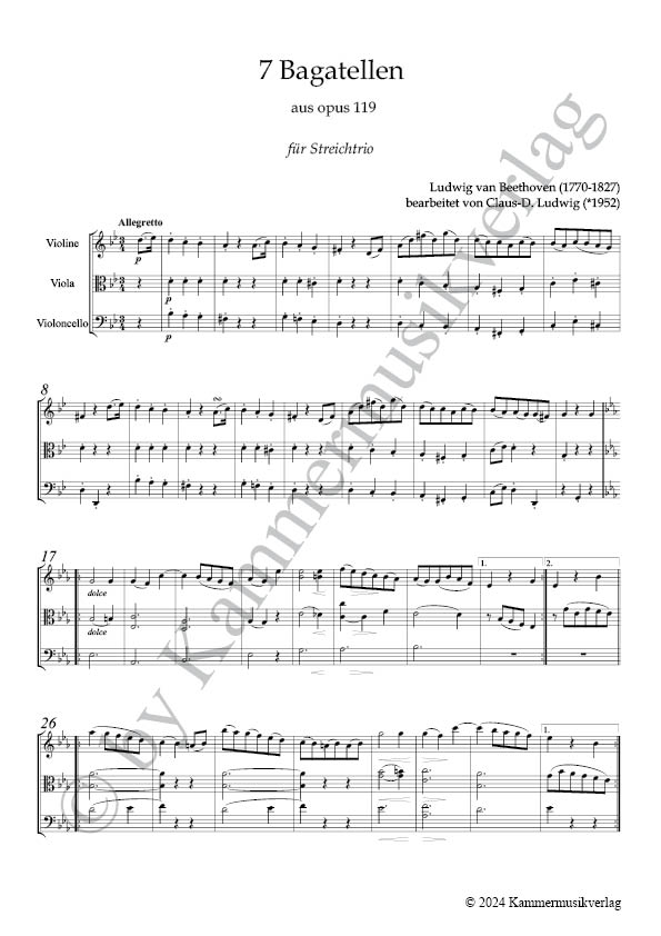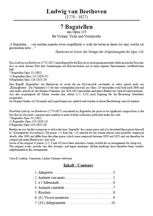 Beethoven, Ludwig van – 7 Bagatellen aus Opus 119 für Violine, Viola und Violoncello