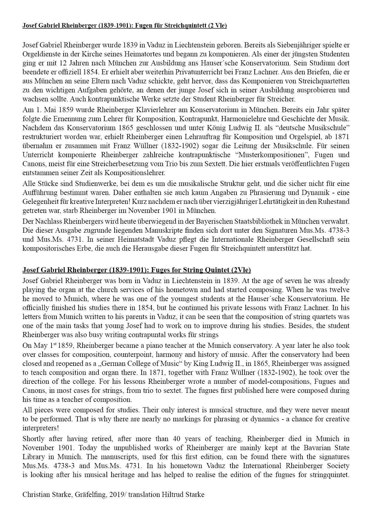 Produktinformationen "Rheinberger, Josef Gabriel – Fugen für Streichquintett (2Va)"
