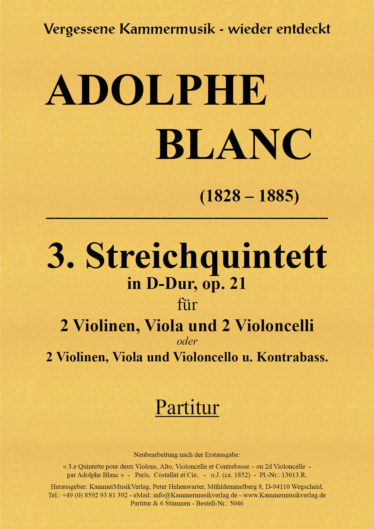 Blanc, Adolphe – Streichquintett m.Kb Nr. 3, D-Dur, op. 21