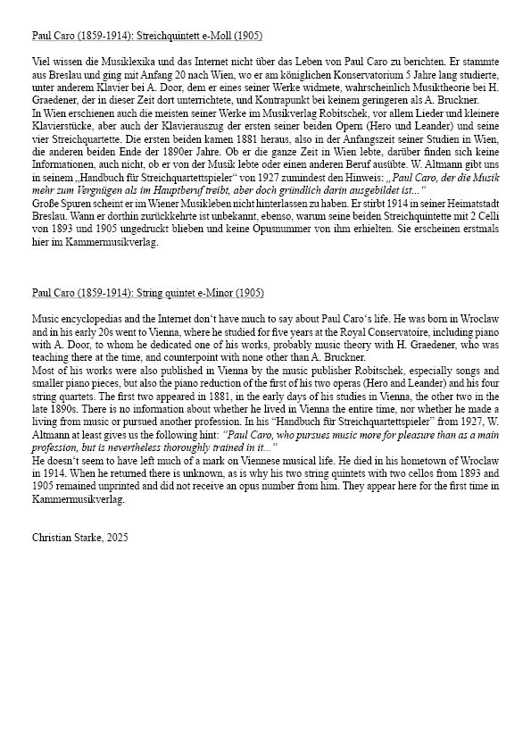 Produktinformationen "Caro, Paul – Streichquintett e-Moll"