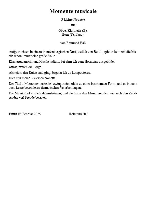Produktinformationen "Haß, Reimund – Momente musicale – 3 kleine Nonette"