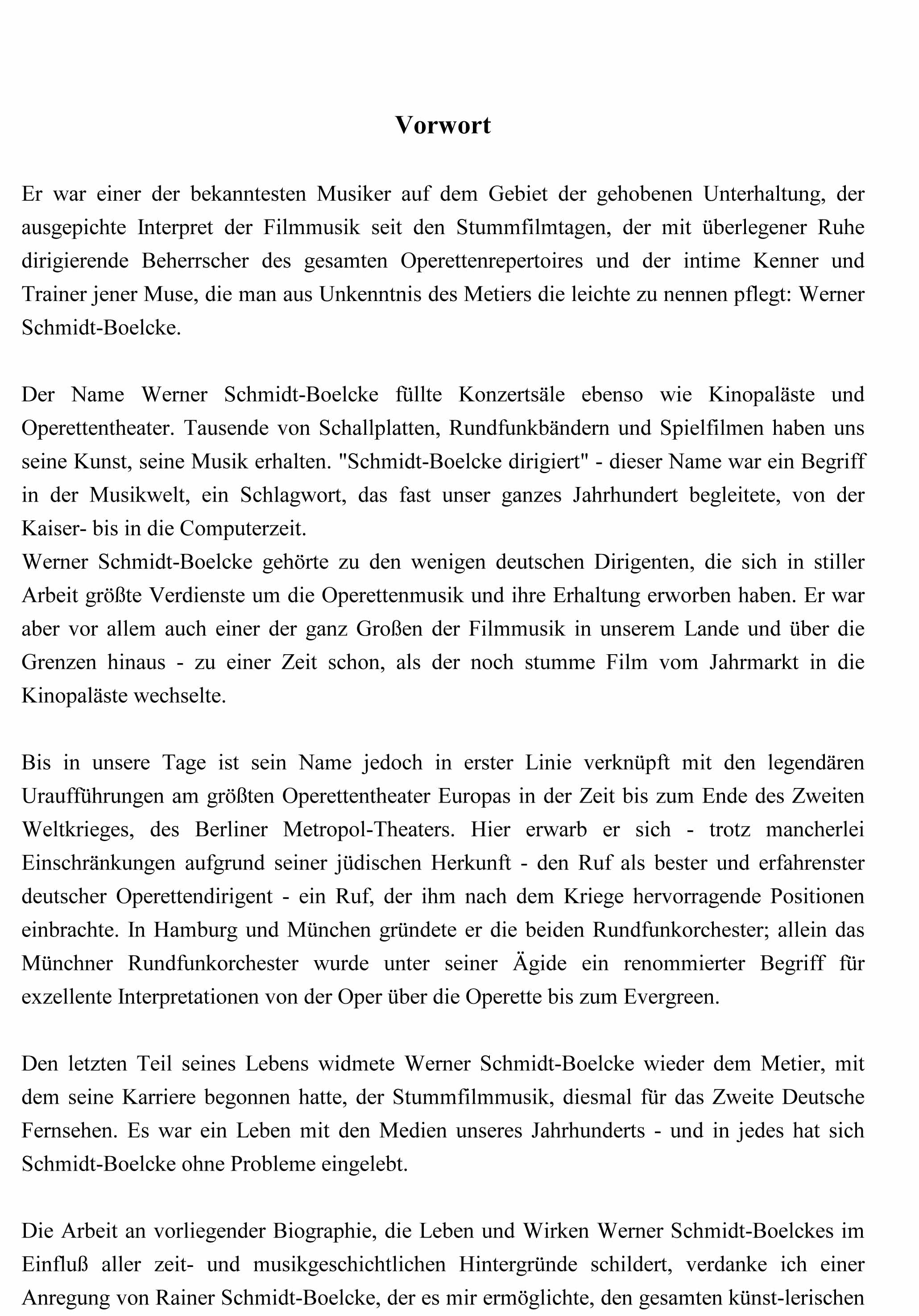 Der Name Werner Schmidt-Boelcke füllte Konzertsäle ebenso wie Kinopaläste und Operettentheater. Tausende von Schallplatten, Rundfunkbändern und Spielfilmen haben uns seine Kunst, seine Musik erhalten. "Schmidt-Boelcke dirigiert" - dieser Name war ein Begriff in der Musikwelt, ein Schlagwort, das fast unser ganzes Jahrhundert begleitete, von der Kaiser- bis in die Computerzeit.