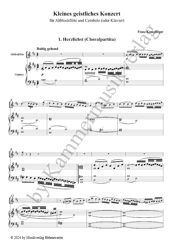 In der Tradition barocker Konzertmusiken entstanden die fünf Instrumentalsätze. Der erste Satz bezieht sich auf einen Bach-Choral, der zweite Satz verwendet die Altstimme aus Rheinbergers Abendlied als cantus firmus. Das Choralspiel erweitert den choralmäßigen Duktus um eine zwölftonige Anlage der Melodie während im vierten Satz, „An der Krippe“ wiederum ein Bach-Choral erscheint. Der letzte, äußert virtuose Satz, „Hirtenmusik“ beschließt dieses Werk.