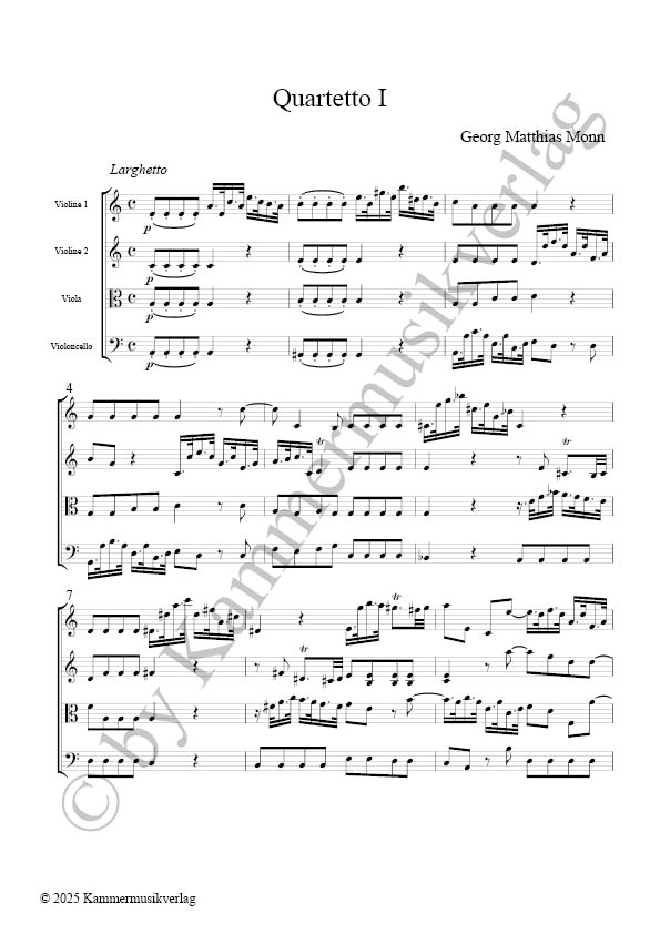 für 2 Violinen, Viola und Violoncello