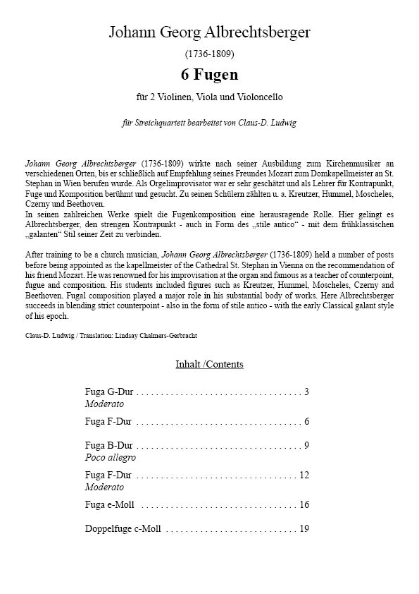 Product information "Albrechtsberger, Johann Georg - 6 Fugues (original for organ)"