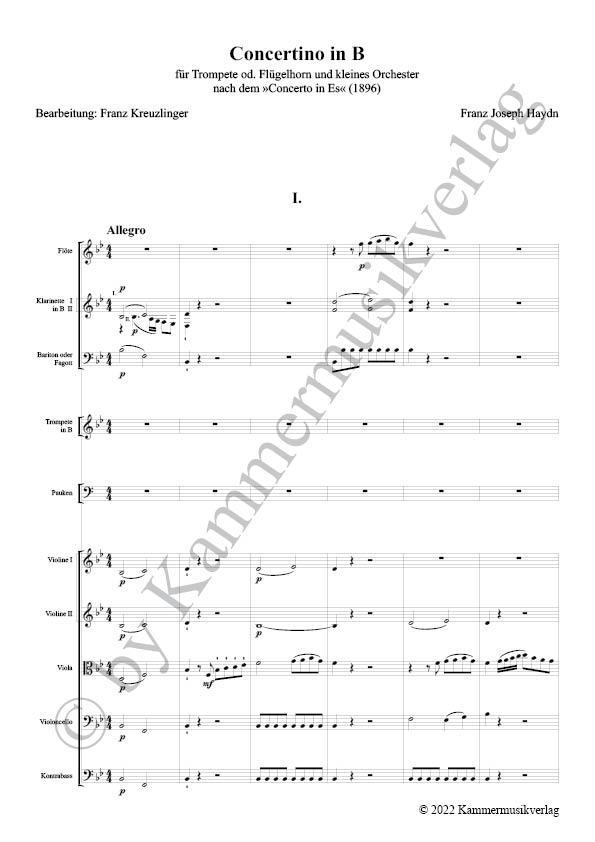 Product information "Haydn, Joseph – Concertino in B flat for trumpet or flugelhorn and small orchestra"