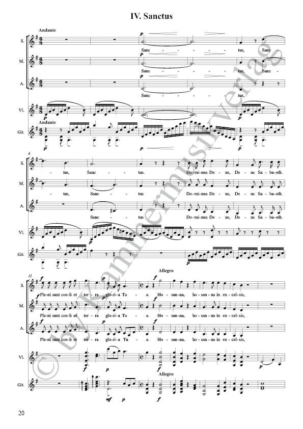 Kempter Karl - Pastoral mass in G for three-part or female choir, violin and guitar