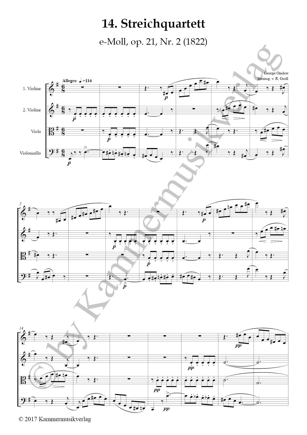 Onslow, George - String Quartet No. 14 in E minor, op.21-2